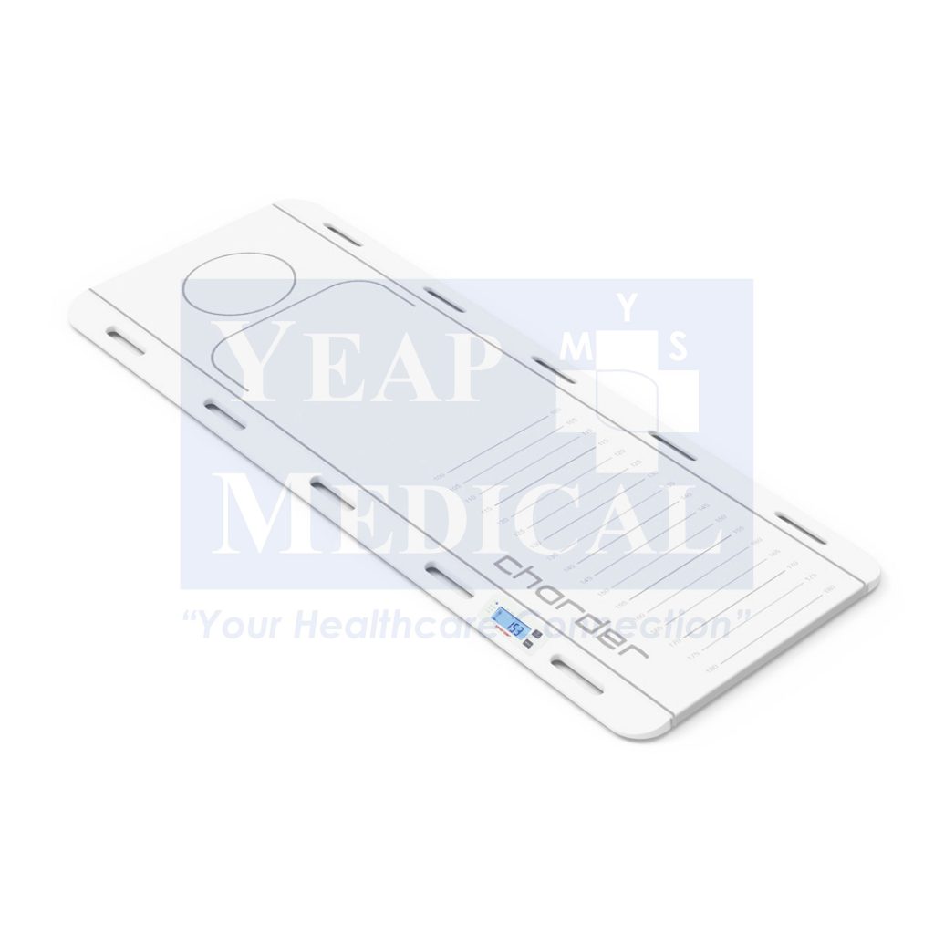 A patient transfer board is combined with a OIML Class III-approved weighing scale, handles can be used for wall storage, saving valuable space. Providing emergency rooms with the perfect space and time-saving solution.